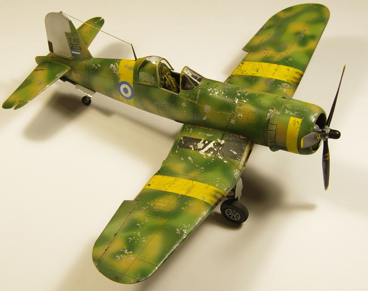 La FAS (forza aerea salvadoregna) era dotata di quattordici velivoli tra F-4 U Corsair e Mustang. Il velivolo da me scelto, e’ il Corsair F-4 U D numero di matricola 215. Gli aerei Salvadoregni mi hanno sempre affascinato per le loro mimetiche motlo complesse ed originali, quindi, quale migliore occasione di riprodurne uno in occasione del mini GB Exsotic Plane di Modelling Time?