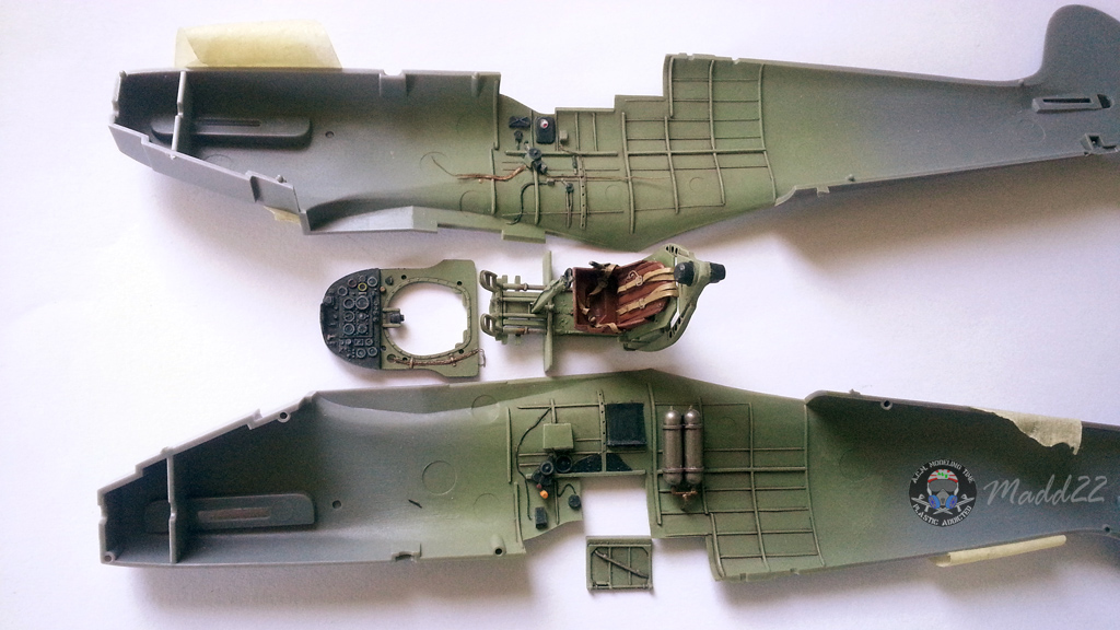 Una zona semplicissima da assemblare, ma di grande effetto. E’ davvero un piacere mettere assieme le pochi parti che lo compongono, ovvero l’ordinata frontale sul quale è montato il pannello strumenti, quella posteriore che ingloba il pannello blindato a protezione del pilota e la struttura che sorregge il sedile. Lateralmente ci sono pochi elementi tra cui spiccano le bombole di ossigeno, le manette e la cloche.
