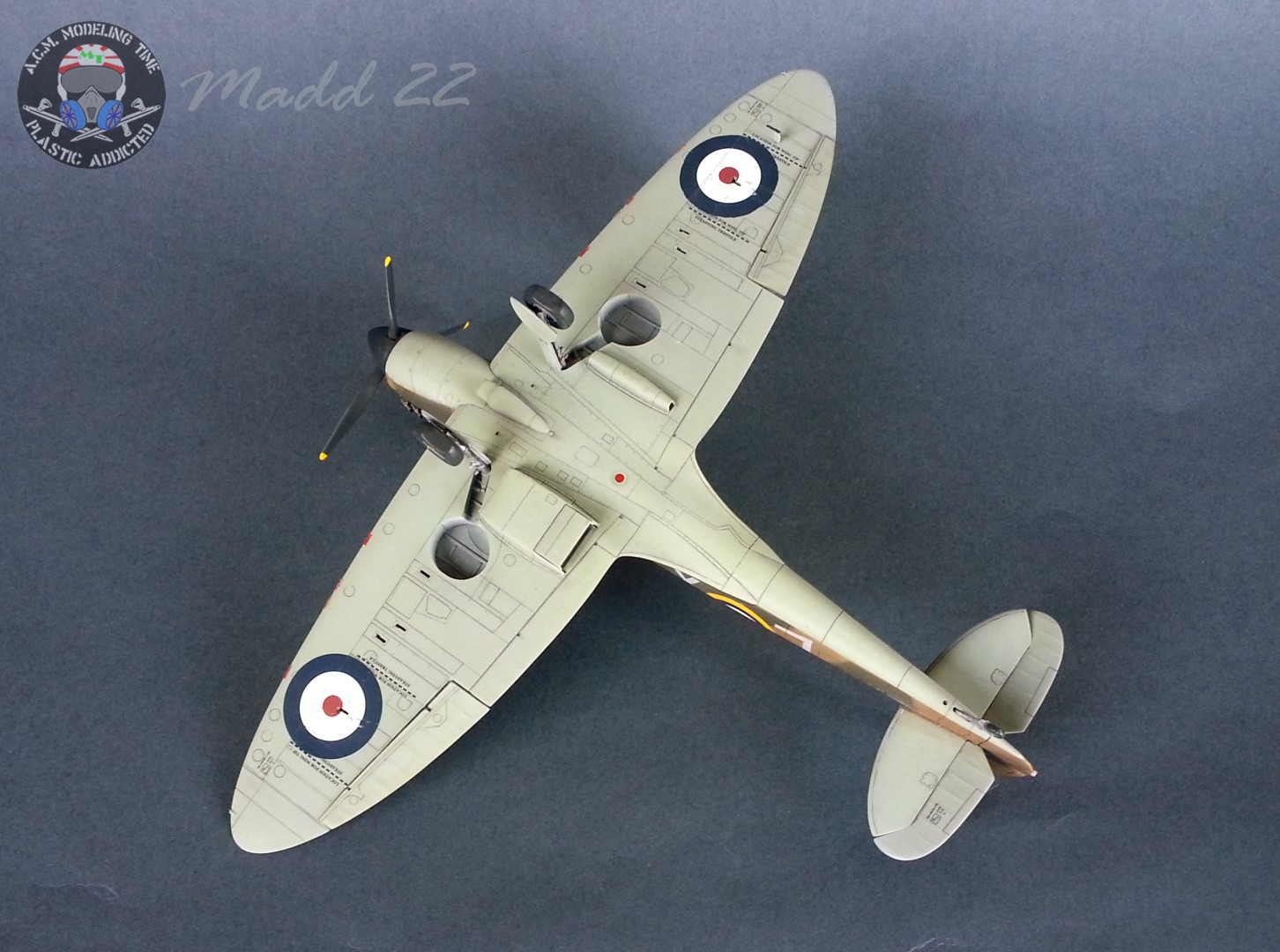 Il “mio” Spitfire sfoggia, con orgoglio, la classica mimetica a due toni di Dark Green e Dark Earth utilizzata dalla sua entrata in servizio nel 1938 e mantenuta sino alla fine della battaglia di Inghilterra, nel 1940.