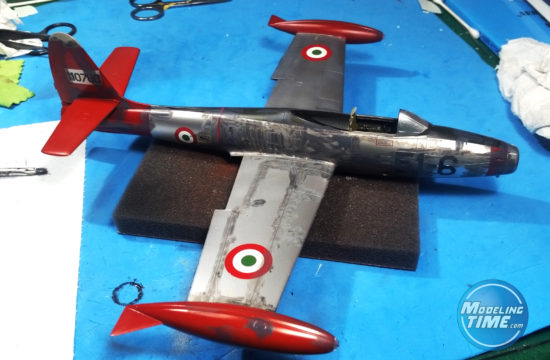 La documentazione sui Thunderjet italiani non manca e tra questa ho scelto alcuni volumi, a mio avviso più significativi: il tomo n°30 della serie “Monografie Aeronautiche Italiane” ed il libro di Luigino Caliaro dal titolo “Il Thunderjet in Italia” dove ho trovato anche diversi spunti per la riproduzione delle diverse tonalità di metallo del velivolo.
