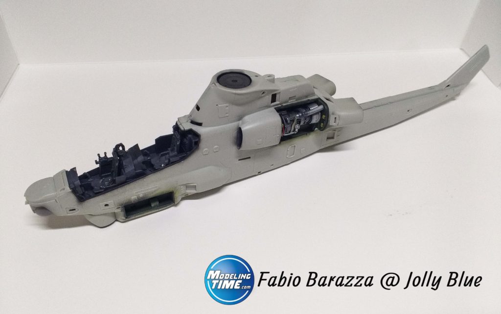 Completato l’armamento ho opacizzo il piccolo “Cobra-Zulu” e per farlo ho utilizzato l’Alclad Flat Cote. Qualche velatura leggera e diventa perfetto! A seguire ho iniziato l’assemblaggio finale montando tutti i pannelli mancanti, il rotore di coda e quello principale ed eliminando le mascherature.