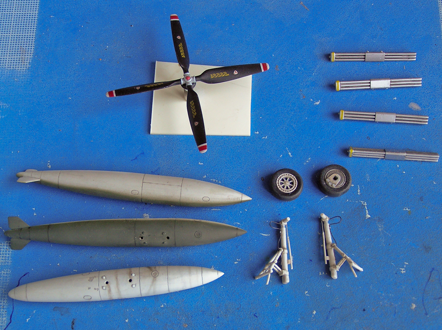 Per i carrelli ho dettagliato solo le gambe aggiungendo il cavo dei freni e un pistoncino obliquo sulla parte frontale; i vani gli ho lasciati da scatola perché mi sembravano già abbastanza dettagliati, considerando che alla fine incollerò il modello ad una basetta rendendoli invisibili.