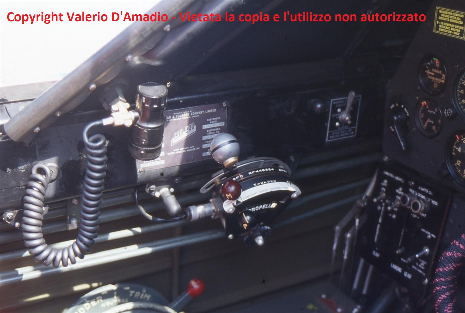 Vale la pena spendere qualche parola sul colore degli interni del mio Harvard: normalmente, sia gli esemplari North American, sia quelli prodotti su licenza, erano verniciati con un particolare verde detto Dark Gull Green o Bronze Green – entrambi assimilabili al F.S. 34092. Studiando le foto dell’esemplare da me riprodotto mi sono reso conto che, durante il restauro, i tecnici non hanno posto particolare attenzione alla fedeltà delle tinte ricoprendo tutte le superfici con un verde più chiaro corrispondente, a occhio, a un Interior Green.