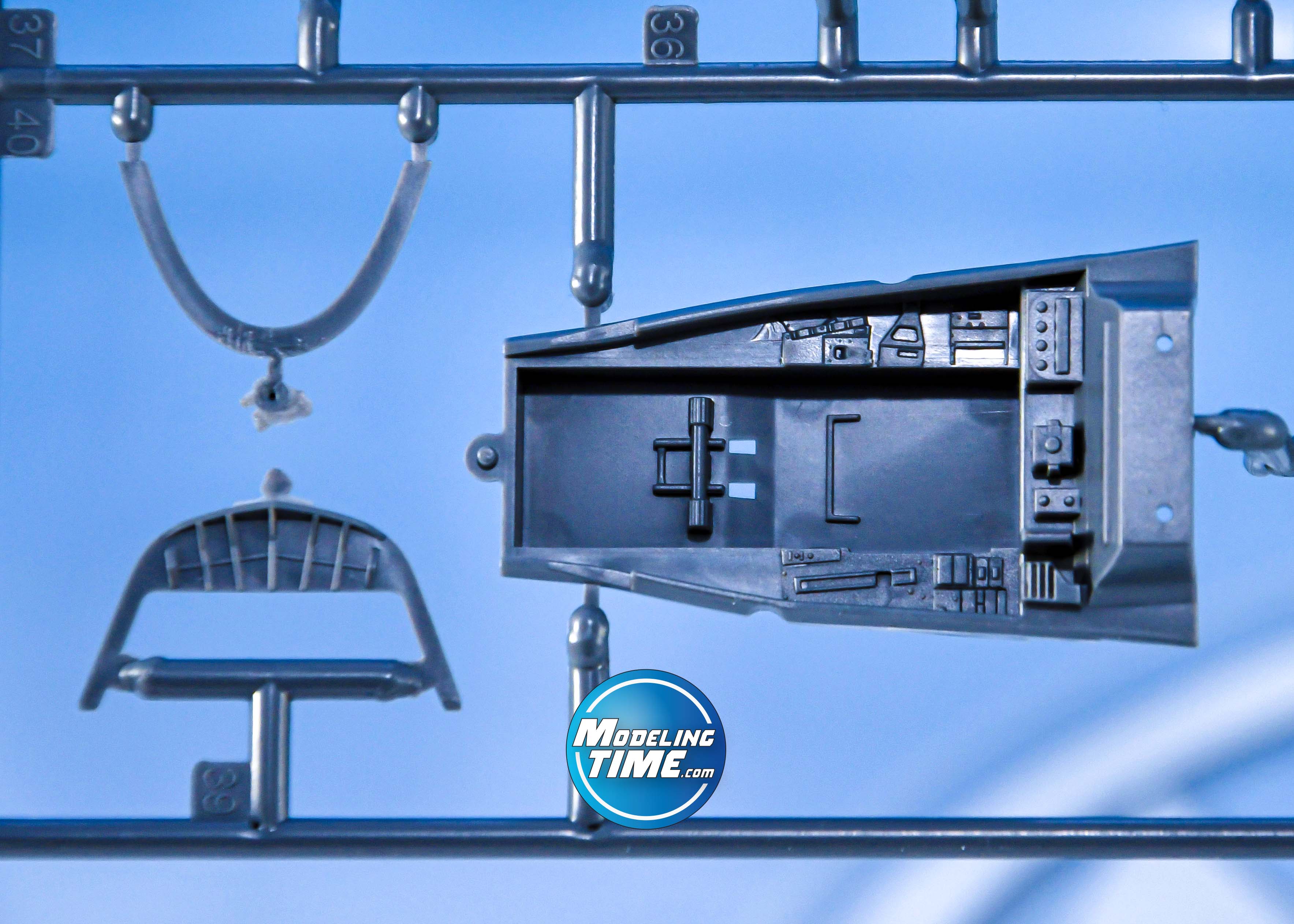 Sulla vasca nulla da segnalare ma è stata omessa la sede di uno dei ganci di chiusura del canopy che sul reale sono in totale quattro (Italeri ne ha rappresentate solo tre per lato)