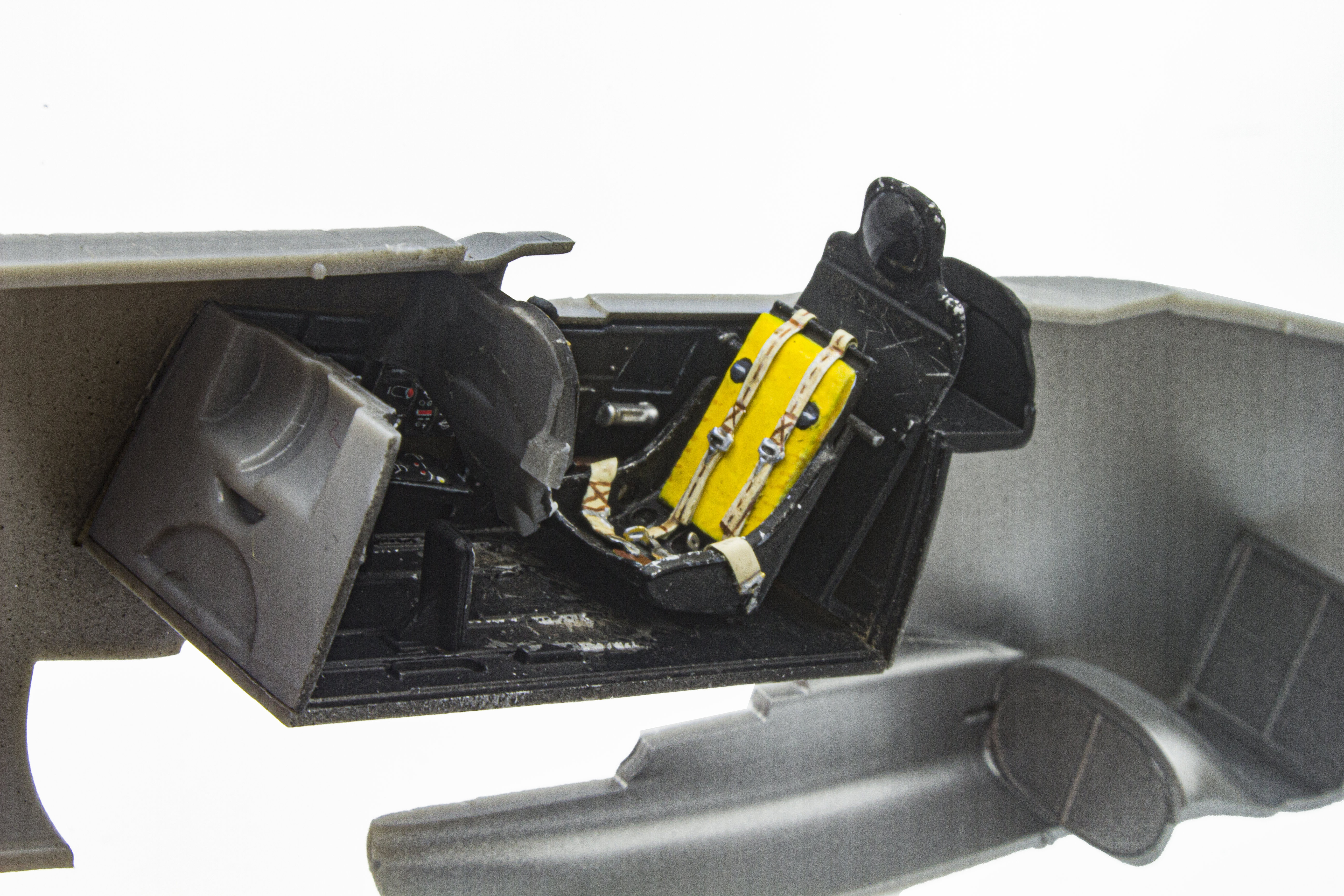 Il quadro strumenti del pilota è un mix di fotoincisioni e decal per le veglie e per il pannello con gli interruttori. Tutti gli altri particolari sono stati completati a pennello.