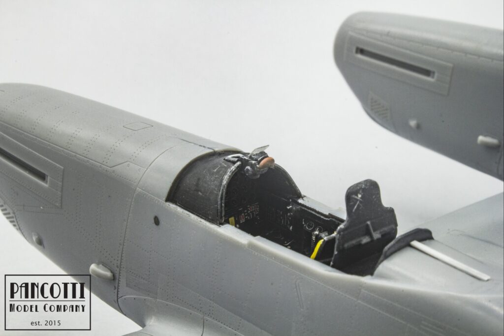 Una curiosità: Nel libro di Alan C. Carey dedicato al Twin Mustang ho trovato una sola foto in cui si intravede il cockpit dall’alto, e ho notato che i frame laterali erano verniciati in rosso. Personalmente li ho riprodotti con delle strisce di decal tagliate a misura, un dettaglio tralasciato da altri modellisti che si sono cimentati con questo soggetto.