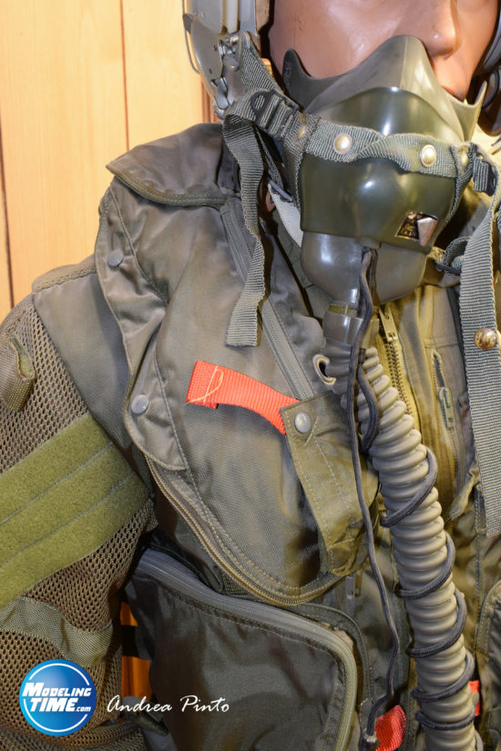 Il figurino proposto dalla model Print 3D in versione anni 70-80 rispecchia nell’equipaggiamento il manichino qui sopra. Casco da volo HGU- 2A/P, tuta da volo K-2B verde scuro, Secumar “primo modello”, pantalone anti-G IMI-334 e stivaletti da volo tipo vecchio. Come detto, tale combinazione non può essere utilizzata per realizzare un pilota in periodo antecedente il 1987/88.