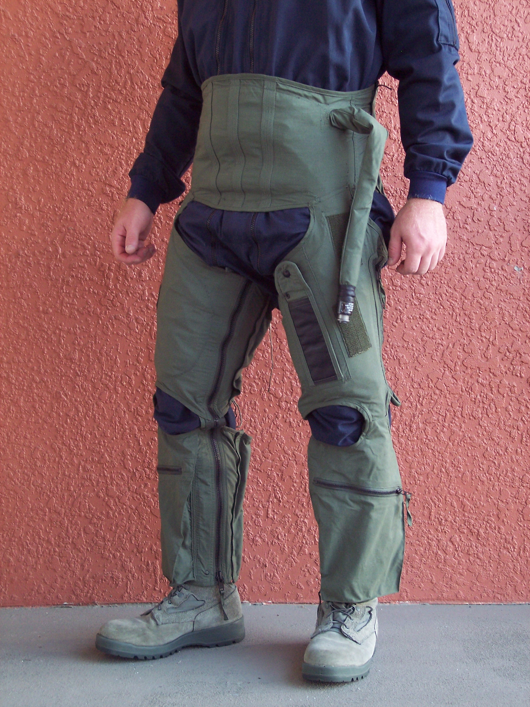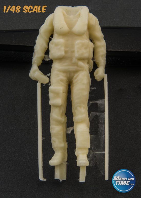 Come detto il blocco principale del corpo è identico per entrambe le configurazioni perciò, anche per la versione anni 70-80, è riprodotta la tuta anti-G IMI-334. Tuttavia quest’ultima fu introdotta soltanto nel 1987/88 con la diffusione della nuova tuta T-85. L’anti G più indicata per il periodo in analisi è il modello CSU-3P, versione italiana del corrispettivo pantalone anti-G americano prodotto su licenza dalla Giusti e molto differente dalla IMI-334. Gli scarponi sono i classici stivaletti da volo a sgancio rapido di cui già ho fatto cenno prima. In definitiva la combinazione HGU-2 A/P (o come lo definisce erroneamente la confezione APH-6), MBU-3P e IMI-334 non è corretta per un pilota del periodo antecedente il 1987/88.