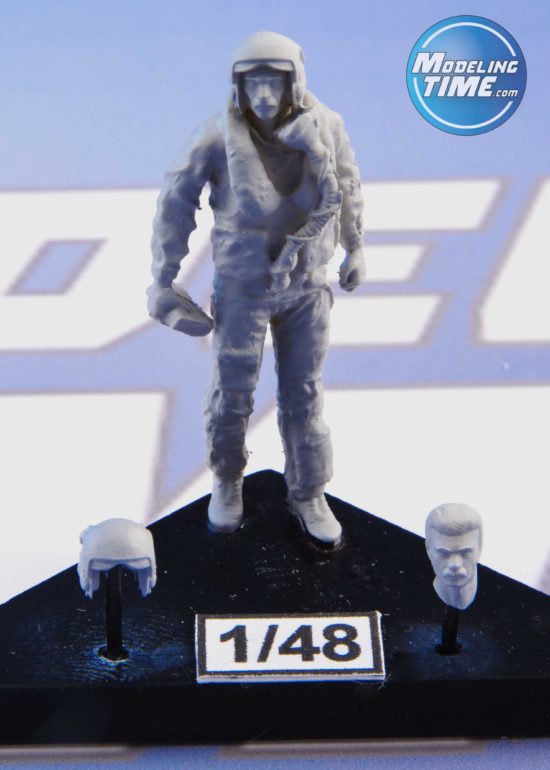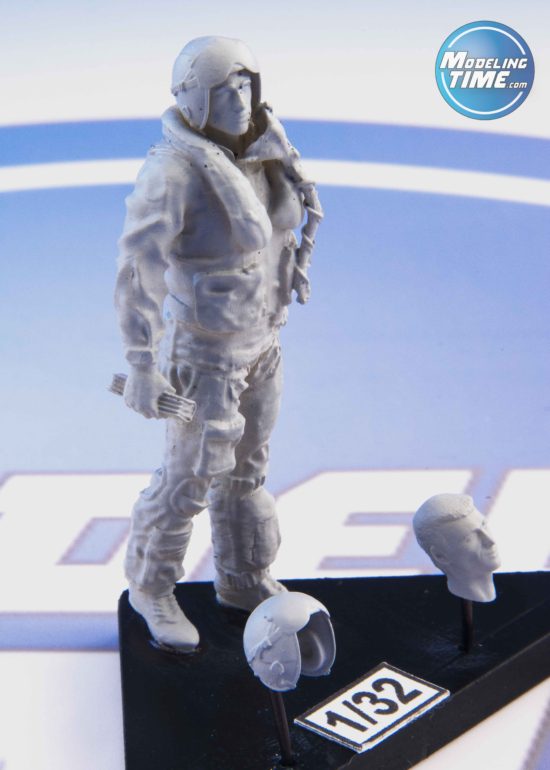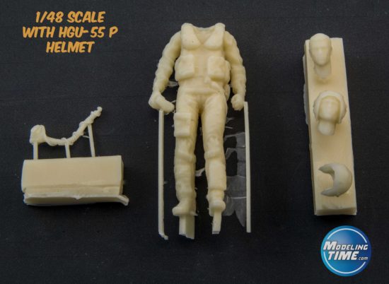 In Italia fu acquisito intorno alla fine degli anni ‘60 (anche prodotto su licenza dalla ditta Giusti di Roma) e utilizzato fino alla fine degli anni ‘80, subendo nel tempo la modifica per i diversi attacchi della maschera ossigeno. La versione proposta nella confezione è quella con il copri visiera in unico pezzo ma il casco risulta sbagliato in quanto riporta delle caratteristiche uniche della versione americana. Nell’APH-6, infatti, le cuffie venivano fissate tramite una vite inserita in un disco di plastica (ben visibile sul figurino in resina) la quale passava attraverso un foro più largo sulla calotta (in modo che il pilota potesse essere in grado di regolarne di poco la posizione). Nell’HGU-2 A/P, al contrario, gli elementi audio venivano tenuti in posizione tramite due cordini legati all’esterno e messi in tensione mediante un perno. Per ottenere un risultato fedele andrebbero limati i dischi in rilievo e rifatti i sopracitati cordini. Cambiava anche l’attacco per l’interfono, completamente assente sul pezzo: con un po’ di plasticard non sarà troppo difficile ricrearlo.