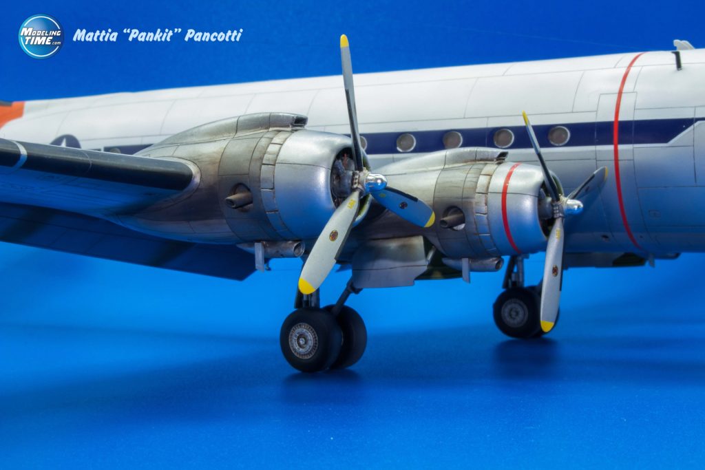 I carrelli e i loro vani sono molto belli e basta aggiungere solo le tubazioni dei freni con un filo sottile di rame. Ho verniciato la base con del grigio medio per poi aggiungere il bianco finale con strati leggeri in modo da lasciare la parte più profonda più scura (un po’ come il Black Basing cui ho fatto cenno qualche riga sopra); in tal modo non servono i lavaggi perché i sottosquadri e recessi sono già ben evidenziati!