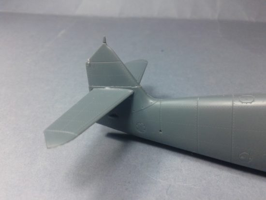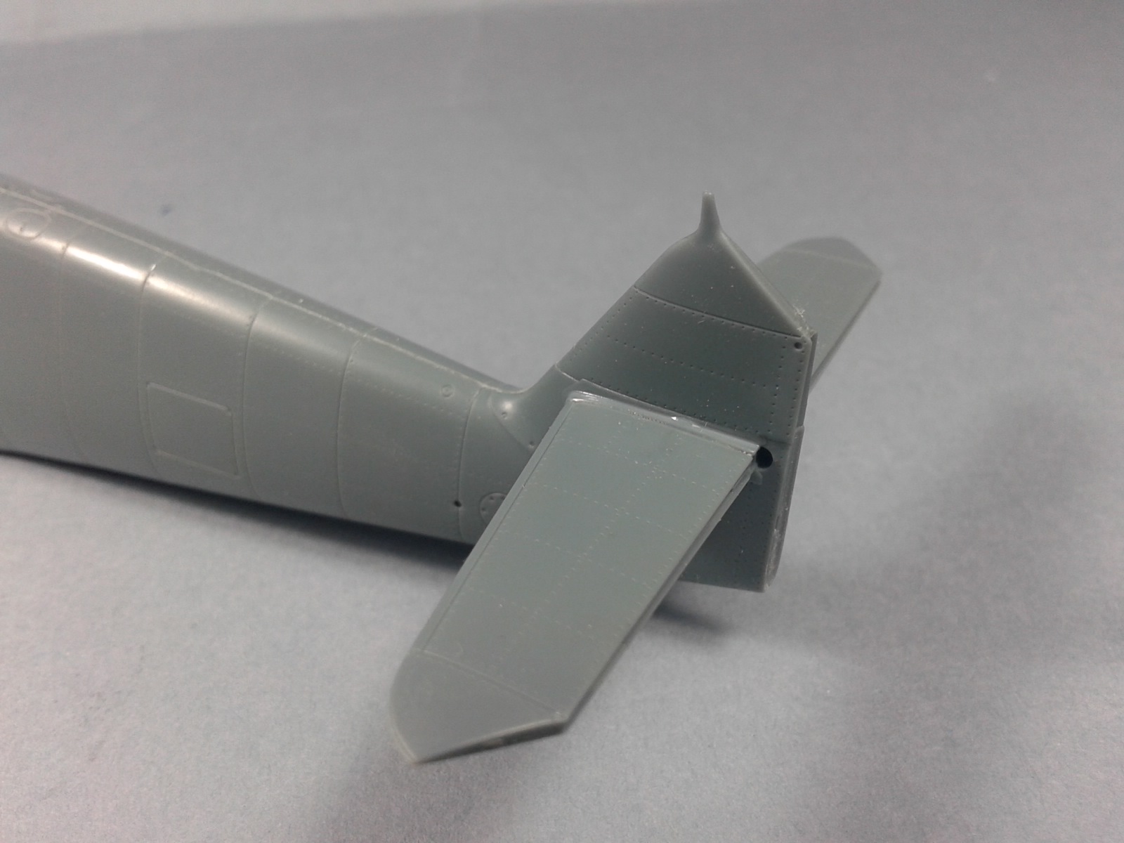 Gli impennaggi hanno ricevuto altre migliorie tra cui l’aggiunta di tutte le file di rivetti e viti (marcati sulla superficie grazie a delle micro punte da 0,2 mm per circuiti stampati elettronici) più visibili e gli inviti per gli scaricatori elettrostatici (realizzati, come per le ali, con un pezzo di ago da insulina).